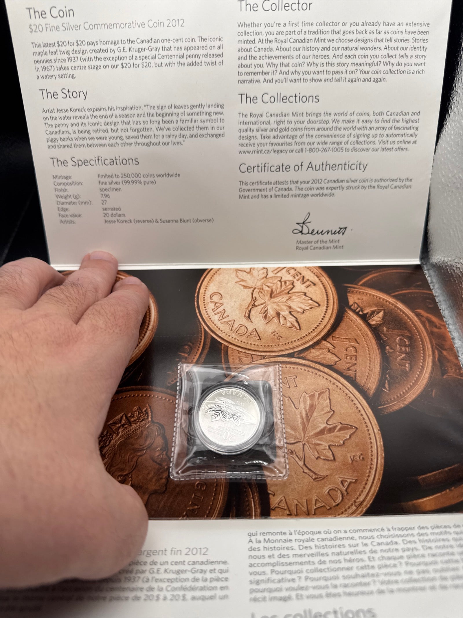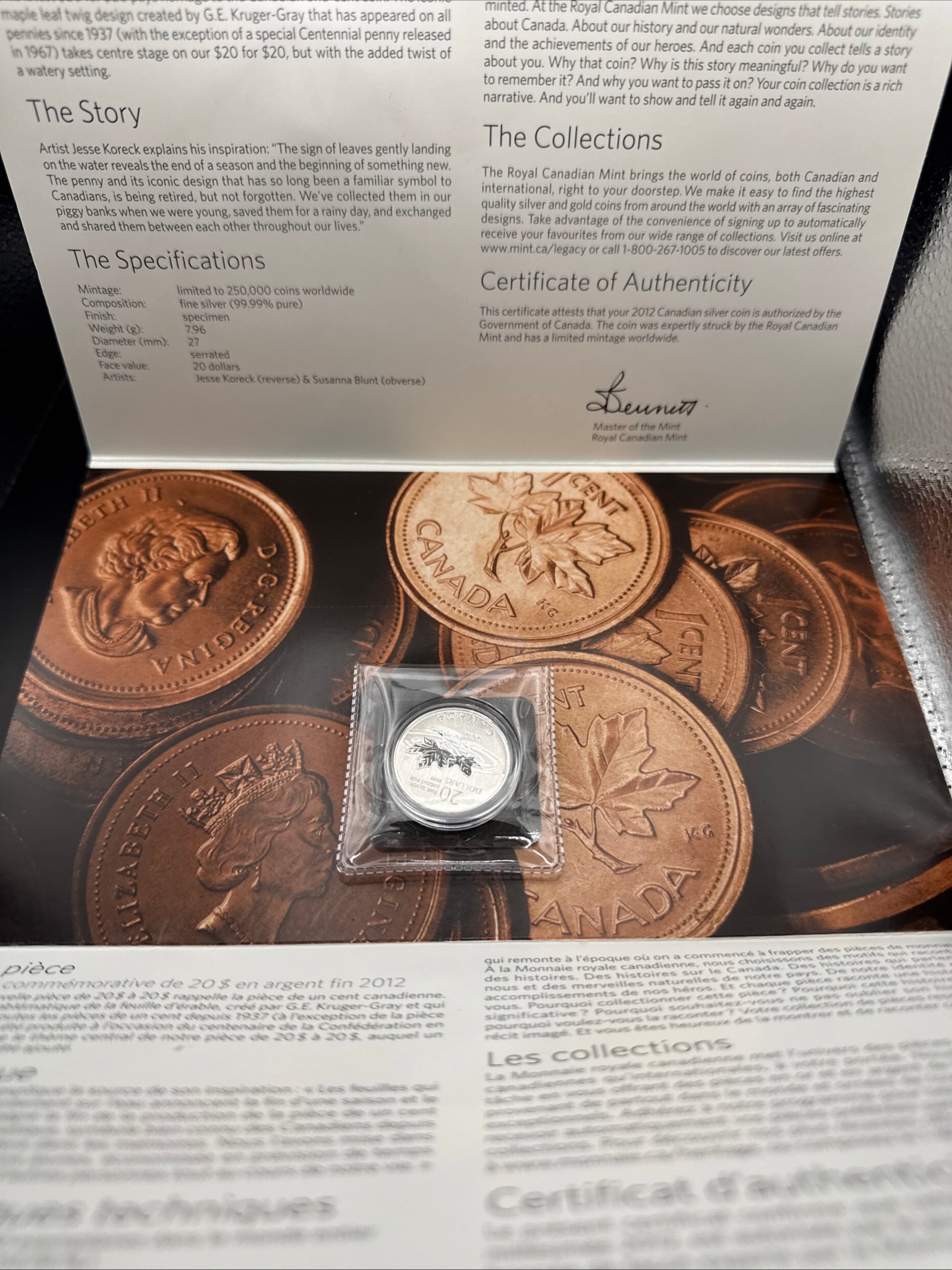 2012 Royal Canadian Mint RCM $20 .9999 Fine Silver Canada Farewell to the Penny